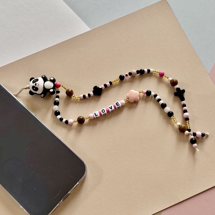 Lanière de téléphone portable en perles – longueur 28cm. Pièce unique.