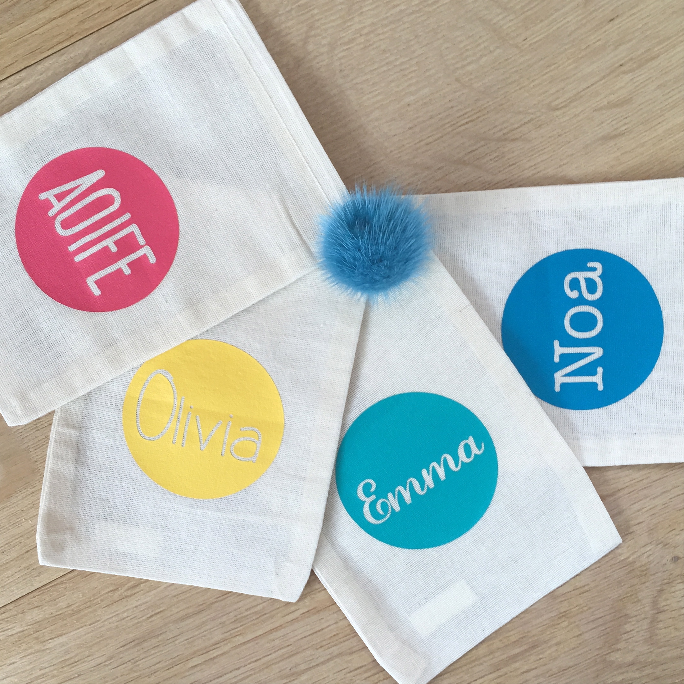 Les amis seront ravis de quitter l’anniversaire de votre enfant avec un sachet personnalisé à leur nom. Vous pourrez y glisser des bonbons ou une petite surprise.