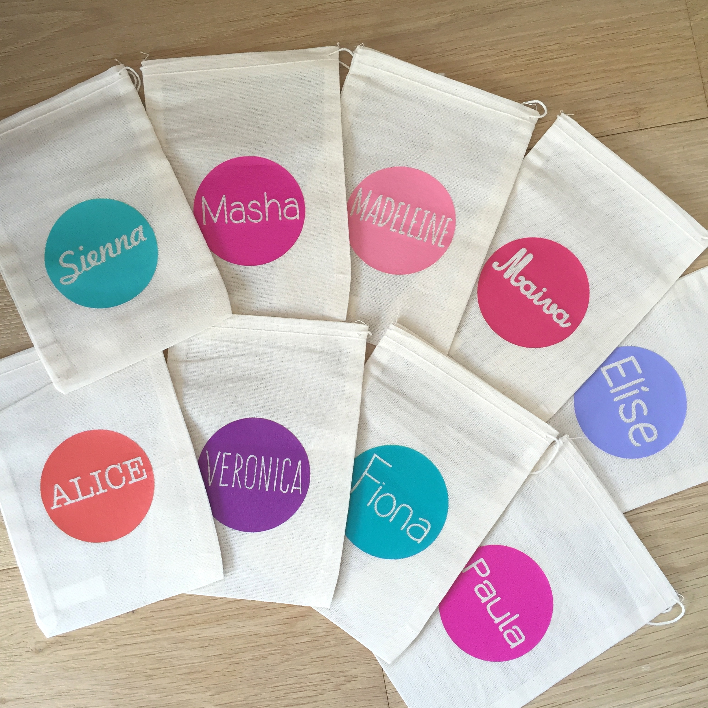4 sachets en mousseline de coton personnalisée