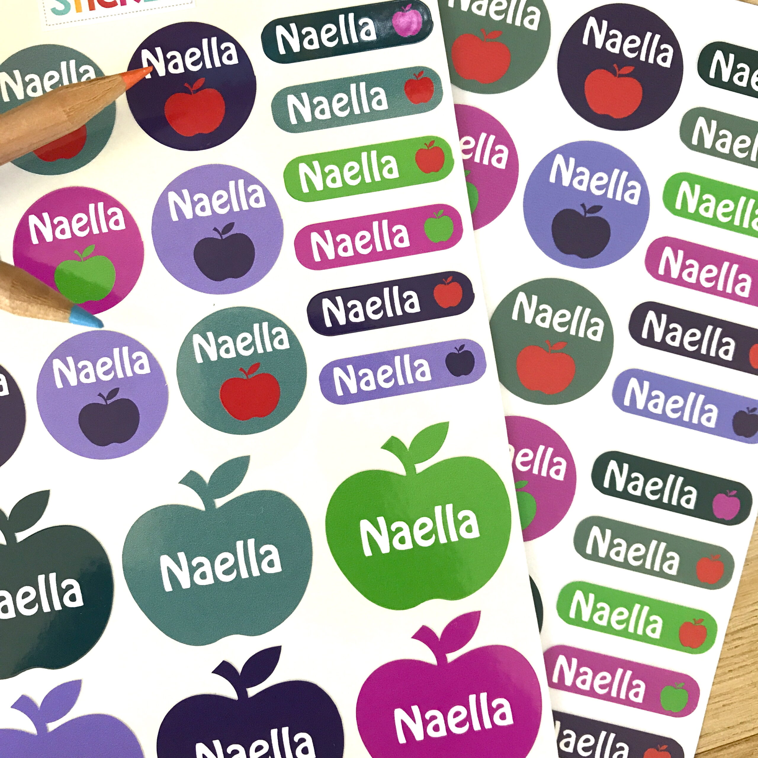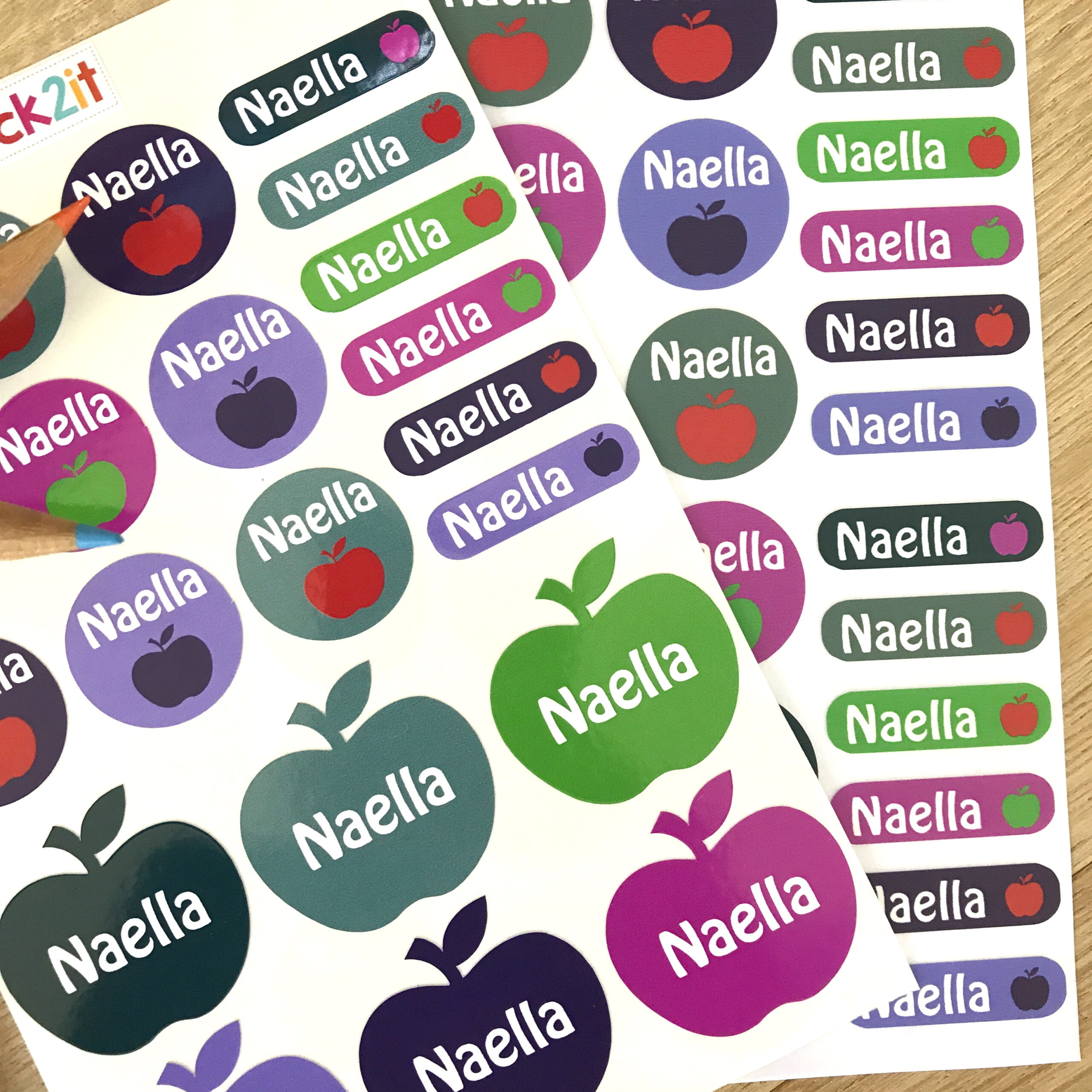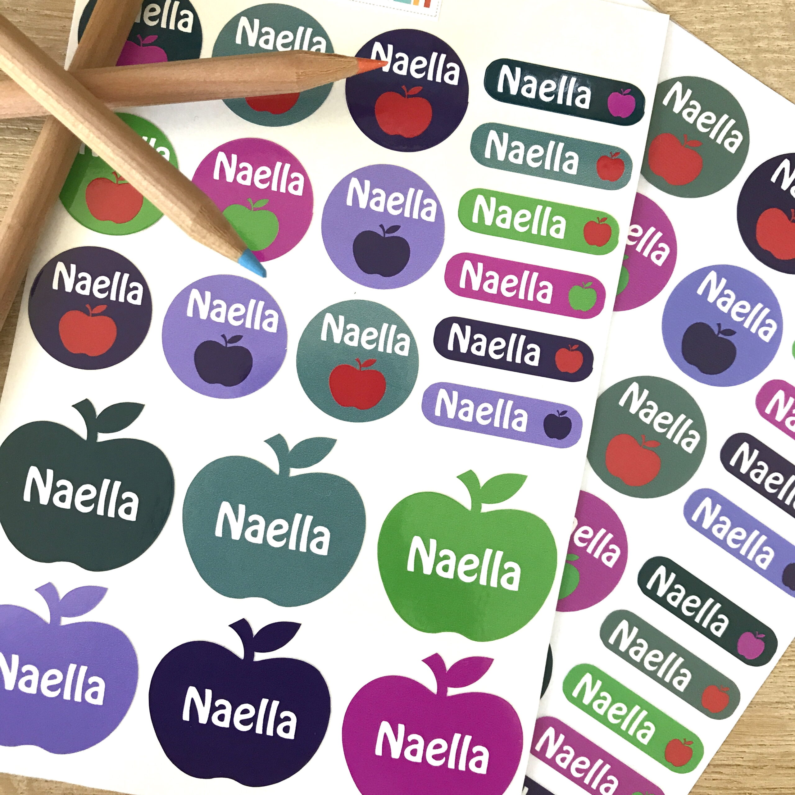 De très jolies étiquettes autocollantes et thermocollantes avec des pommes, pour marquer tous les objets et vêtements ou textiles.