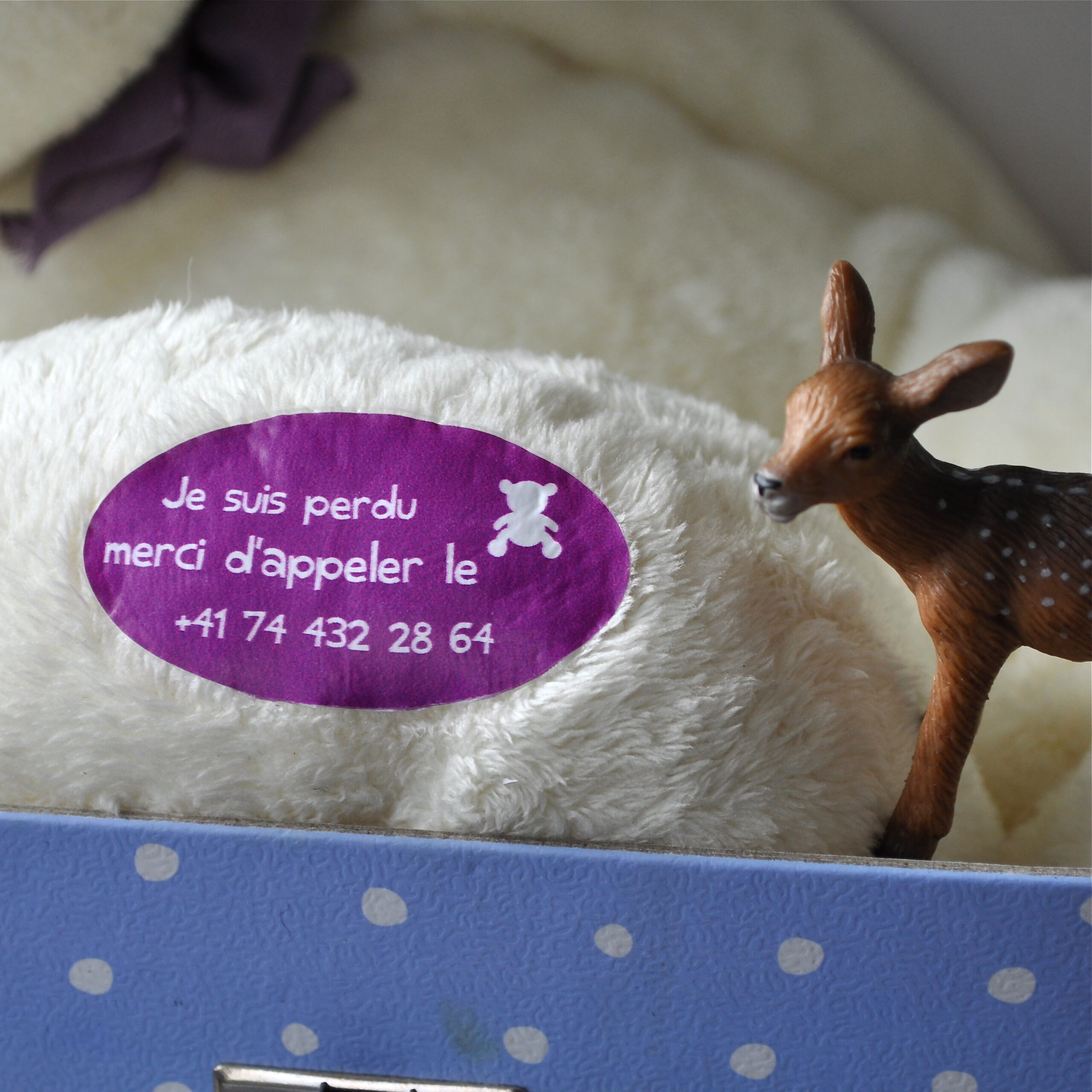 Grâce à cette étiquette thermocollante, doudou même perdu, pourra retrouver le chemin de la maison. Il suffit d’indiquer le nom de la personne à contacter et de fixer au fer à repasser l’étiquette sur doudou.